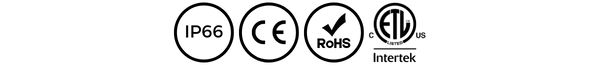 Potencias: 50W / 80W / 100W / 150W Flujo: hasta 19,500 lm CCT: 3000K / 4000K / 5000K Eficiencia: >130 lm/W CRI: 70 Dimming: 1-10V, PWM IP66 SPD: 10kV Montaje: Suspendido