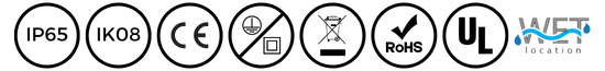 Potencia: 12W Flujo: 1020 lm Eficiencia: 85 lm/W CCT: 3000K CRI: 90 Ángulo: 100° Montaje: Superficie Dimming: TRIAC o 0-10V IP65, IK08